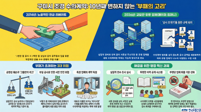 업계 관계자는 "10년 전 폭로된 부패 구조가 여전히 유령 업체의 모습으로 지속되고 있다는 것은 시의 자정 작용이 멈췄다는 증거"라며, "수의계약 이력 공개 시스템을 강화하고 부정당 업체의 퇴출 기준을 대폭 높여야 한다"고 강조했다.