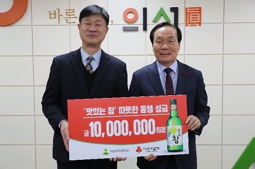 이번 성금 기부는 ㈜금복주의 대표 브랜드인 ‘참소주’에 ‘사랑의 열매’를 부착하고 판매 수익금의 일부분을 기부하는 것으로 경북사회복지공동모금회와 ㈜금복주가 사회공헌 협약을 체결하여 나눔 문화를 확산하고자 마련하는 것이어서 더욱 의미가 있다.