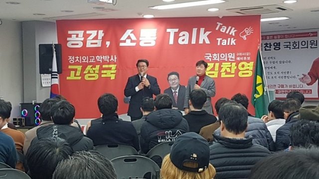 (전국= KTN) 김도형 기자= 12일 오후 3시 30분 구미시 광평동에 위치한 제21대 총선 구미갑지구 국회의원 예비후보 김찬영 사무소에서 고성국 박사의 '공감, 소통 토크' 행사가 열렸다.