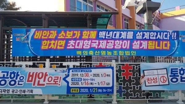 이 계획안은 공항유치가 확정되면 금전적인 보상을 하겠다는 안이며, 현재 각 마을별로 실행이 되고 있는바 금전적 이익을 이유로 여론을 심각하게 왜곡하는 불법행위인바 이번 주민투표는 공정성에 심각한 훼손을 입었다 할 것이다.