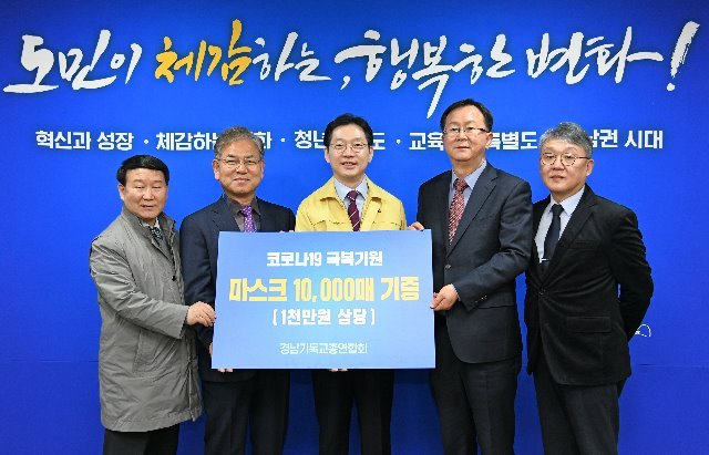 경남기독교연합회 관계자는 “코로나19 사태가 하루빨리 안정되길 기도한다. 힘든 상황을 겪고 있는 도민들에게 조금이나 보탬이 되길 바라는 마음에서 이번 기부를 하게 됐다.”며 “필요한 곳에 잘 사용되길 바란다”고 말했다.