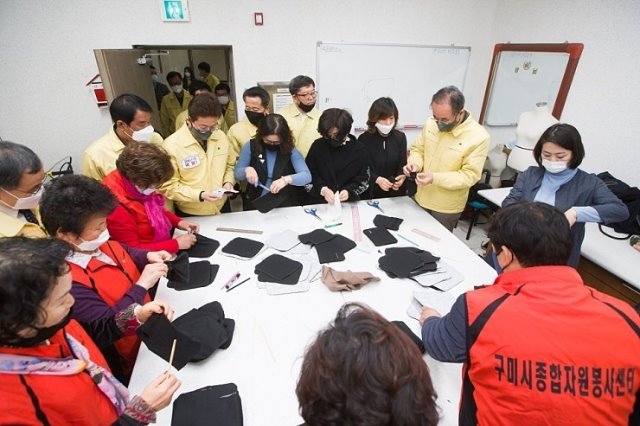 코로나 19 극복, 시군과 지역주민의 자율적 참여로 마스크 품귀현상을 해결하고 도민의 건강을 지켜내기 위하여 추진한 경북형 마스크 제작 및 보급에 구미시는 한마음 한뜻으로, 나눔과 사랑의 봉사로 임했다.