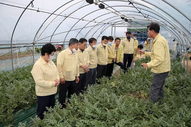 산업건설위원들은 수박 방임재배 방법과 농촌지역 애로사항을 청취하고 현장을 둘러보았으며, 새로운 기술을 개발하여 품질 개선을 위해 노력하고 있는 농가주를 격려했다.