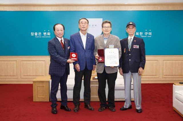 (전국= KTN) 김도형 기자= 구미시(시장 장세용)에서는 10. 12(월) 국제통상협력실에서‘6.25전쟁 참전자에 대한 무공훈장 찾아주기’사업의 일환으로 참전유공자인 고(故) 차영범의 자녀 차무식씨에게 무공훈장을 전달하는 전수식을 개최했다.