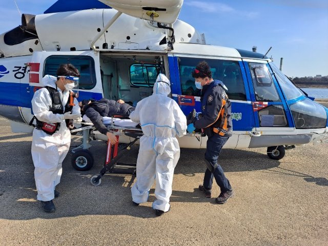 (전국= KTN) 김도형 기자= 경북소방본부 소방항공대는 21일 07시경 독도에서 근무중인 항로표지관리원 김OO(남/48) 복통으로 이송 요청을 받고 소방헬기를 이용해 포항 00병원으로 긴급 이송했다고 밝혔다.