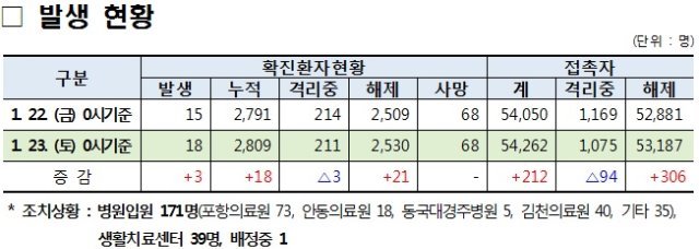 ㅇ (신규확진자) 18명(지역발생 18) - 1. 22. 확진