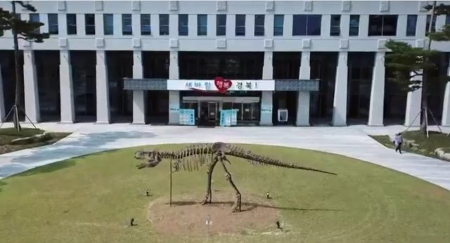 경북도청 앞마당에 설치된 공룡화석 조형물