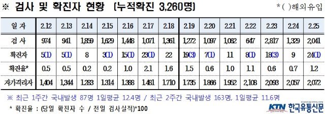 경북도내, 2월 25일 코로나19 확진자 24명(국내 23, 해외유입 1)발생