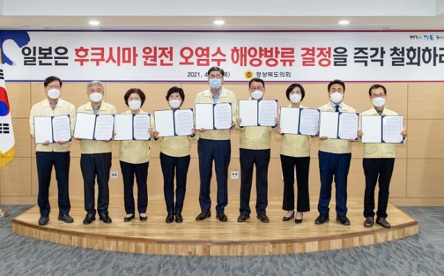 우리 경상북도의회는 일본 정부의 오만하고도 독단적인 후쿠시마 원전 방사능 오염수 방류 결정이 전 세계인류의 안전을 위협하고 해양환경을 비롯한 지구촌에 돌이킬 수 없는 재앙을 불러일으킬 것이기에 300만 도민과 함께 분노를 금치 못하며 다음과 같이 강력히 규탄하는 바이며, 어리석은 방류결정 조치를 즉각 철회할 것을 촉구한다.