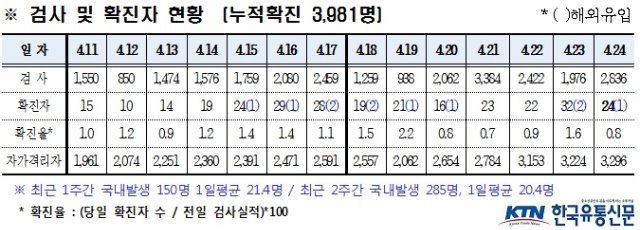 (전국= KTN) 김도형 기자= 경상북도에서는 4. 24.(토) 코로나19 확진자 24명(국내 23, 해외 1)이 신규 발생하였다.