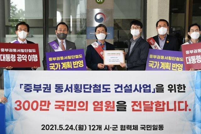 (전국= KTN) 김도형 기자= 경북 영주시(시장 장욱현)는 24일 경북 및 충청지역 12개 지자체와 함께 ‘중부권 동서횡단철도’ 건설사업의 제4차 국가 철도망 구축계획 반영을 촉구하는 300만의 염원을 담은 서명부를 국토교통부에 전달했다.
