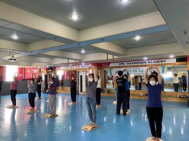 (전국= KTN) 김도형 기자= 경북 구미시 형곡1동(동장 이순애)에서는 2021. 6. 7.(월) 주민자치위원회(위원장 박정섭) 주관으로 관내 체육관에서 주민자치위원 및 수강생 등 30여명이 참석한 가운데「바른 자세 좋은 운동 교실」개강식을 가졌다.