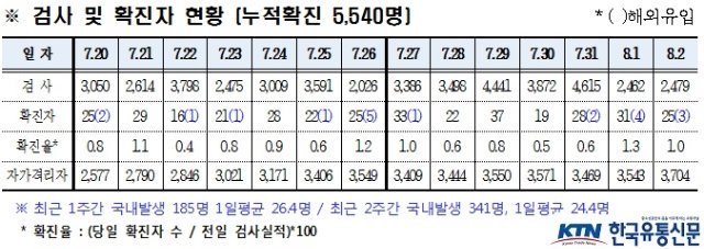 경북도내, 8월 2일 코로나19 확진자 25명(국내 22, 해외 3) 발생