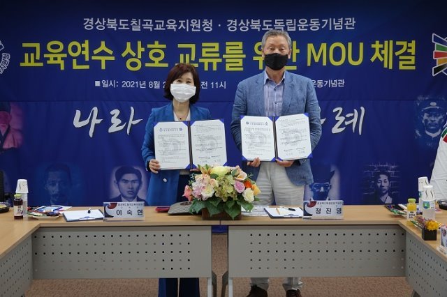 (전국= KTN) 김도형 기자= 경상북도독립운동기념관(관장 정진영)과 경상북도칠곡교육지원청(교육장 이숙현)은 칠곡지역 학생들에게 경북의 독립 운동사를 바르게 알리고 자긍심을 높여 주기 위한 교육 연수 활성화 업무협약을 2021. 8. 20.(금) 체결하였다.