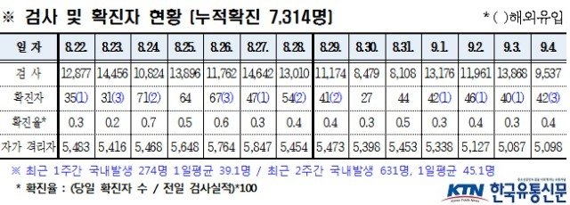경북도내, 9월 4일 코로나19 확진자 42명(국내감염 39, 해외 3) 발생