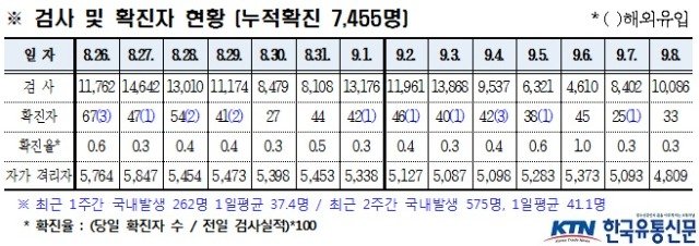 경북도내, 9월 8일 코로나19 확진자 33명(국내감염) 발생
