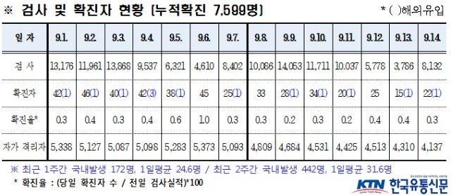 경북도내, 9월 14일 코로나19 확진자 22명(국내 21, 해외 1) 발생