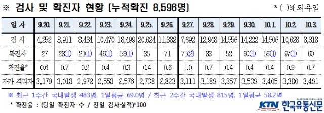경북도내, 10월 3일 코로나19 확진자 60명(국내감염) 발생