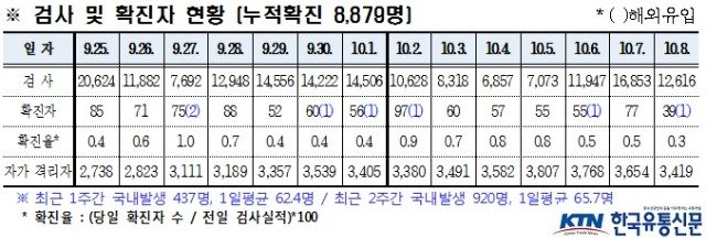 경북도내, 10월 8일 코로나19 확진자 39명(국내 38, 해외 1) 발