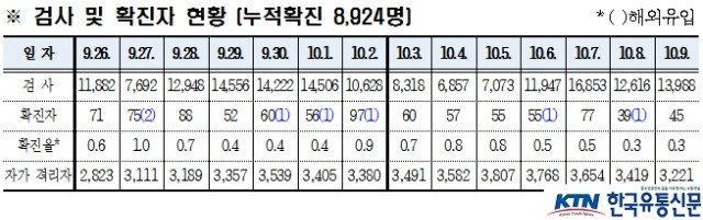 경북도내, 10월 9일 코로나19 확진자 45명(국내) 발생