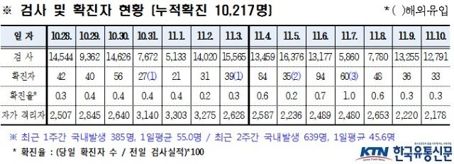 경북도내, 11월 10일 코로나19 확진자 33명(국내감염) 발생