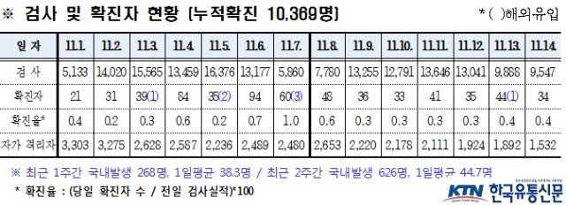 (전국= KTN) 김도형 기자= 경상북도에서는 11. 14.(일) 코로나19 확진자 국내감염 34명이 신규 발생했다.