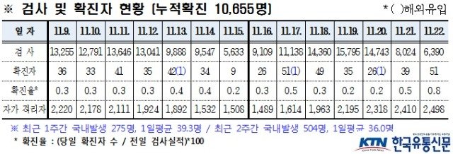 경북도내, 11월 22일 코로나19 확진자 51명(국내감염) 발생