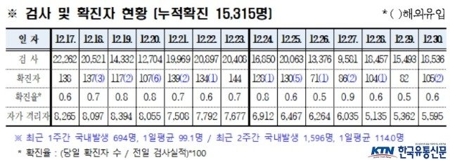 경북도내, 12월 30일 코로나19 확진자 105명(국내 103, 해외 2) 발생