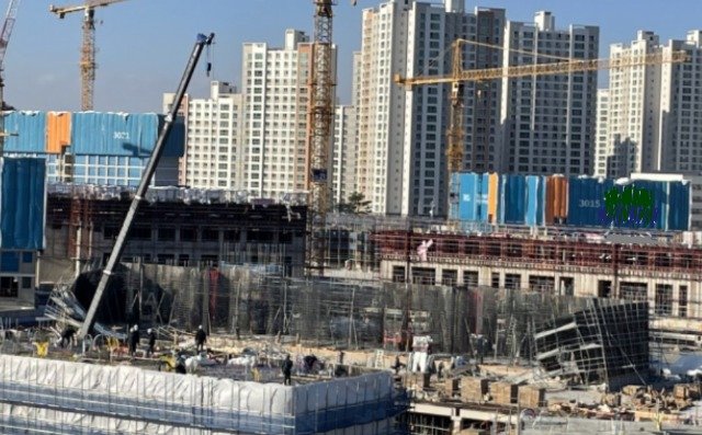 (전국= KTN) 김도형 기자= 지난 13일(목) 12시30분 산동읍 인덕리 1116번지 상의 시공중인 중흥S클래스 아파트 현장의 거푸집이 기울어지는 사고가 발생했다.
