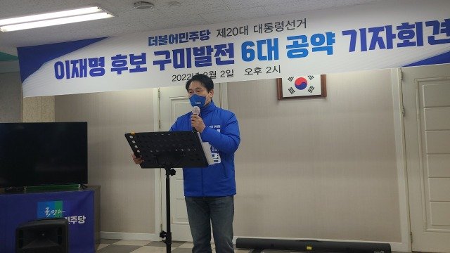 (전국= KTN) 김도형 기자= 2일 더불어민주당 구미시갑정당선거사무소에서 이재명 대통령 후보의 구미발전 6대공약 관련 기자회견이 열렸다.