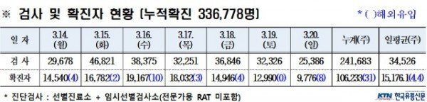 경북도내, 3월 20일 코로나19 확진자 9, 776명(국내 9, 768, 해외 8) 발생