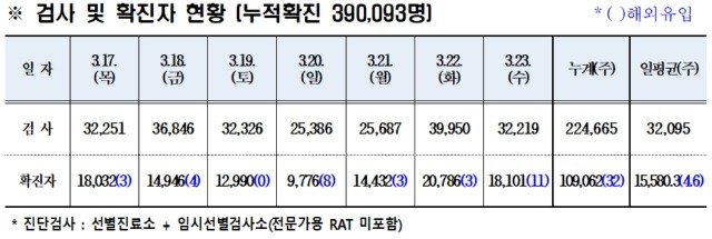 경북도내, 3월 23일 코로나19 확진자 1만8101명 발생 국내 1만8090, 국외 11