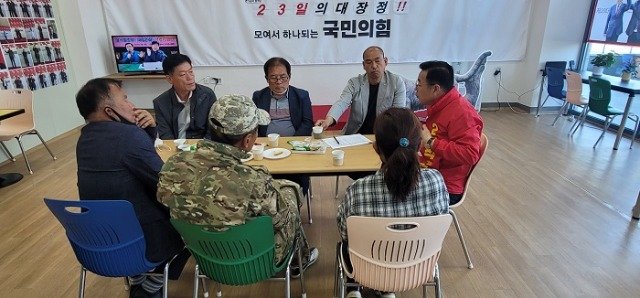 김석호 구미시장 예비후보가 농민단체와 간담회를 가지고 있다