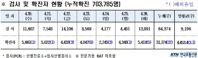 (전국= KTN) 김도형 기자= 경상북도에서는 4월 26일(화) 23개 시·군(시 10, 군 13)에서 코로나19 확진자 국내감염 5413명, 국외감염 5명이 신규 발생했다.