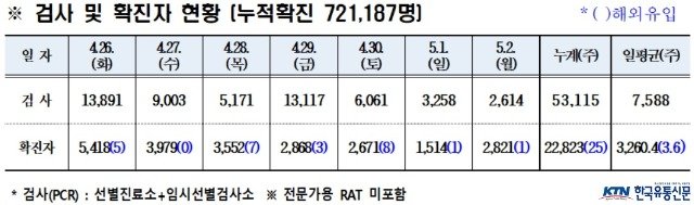 (전국= KTN) 김도형 기자= 경상북도에서는 5월 2일(월) 22개 시·군(시 10, 군 12)에서 코로나19 확진자 국내감염 2820명, 국외감염 1명이 신규 발생했다.
