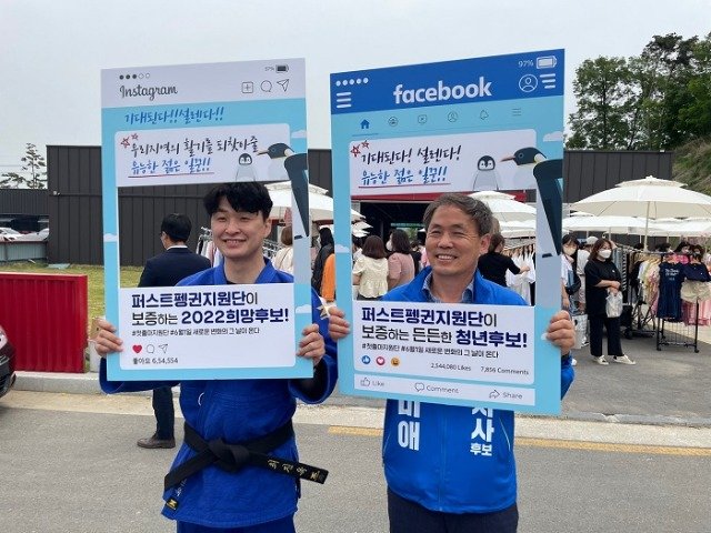 파란색 유도복 입고 열띤 선거 홍보···이색 선거운동 눈길