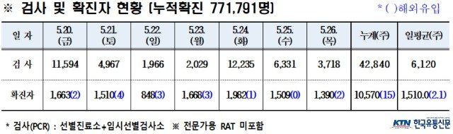 경북도내, 5월 26일 코로나19 확진자 1390명(국내 1388, 국외 2) 발생