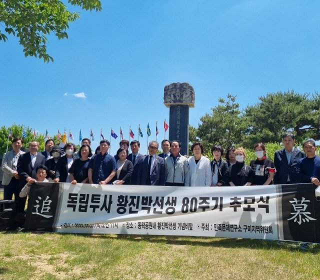 (전국= KTN) 김도형 기자= 독립투사 황진박 선생 80주기 추모식이 26일(목) 구미시 동락공원 내에 위치한 기념비 앞에서 열렸다. 이번 행사는 민족문제연구소 구미지역위원회(회장 김영덕)의 주최로 선생의 후손을 비롯해 각계각층 인사, 시민들이 참석했다.