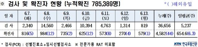 경북도내, 6월 13일 코로나19 확진자 579명(국내 578, 국외 1) 발생
