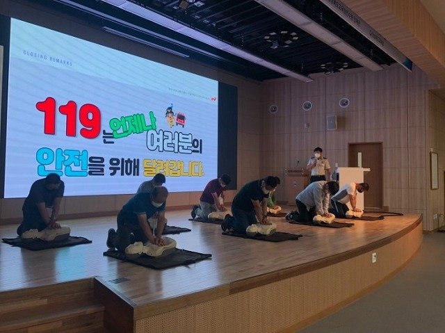 교육 내용으로는 ▲심정지 발생 시 환자 상태확인 및 119신고 요령 ▲구급대가 현장에 도착할 때까지 심폐소생술을 시행하는 일련의 과정 ▲화재 초기 진압에 유용한 소화기 사용법 ▲옥내소화전을 활용하여 화재를 진압하는 체험위주의 교육을 실시했다.