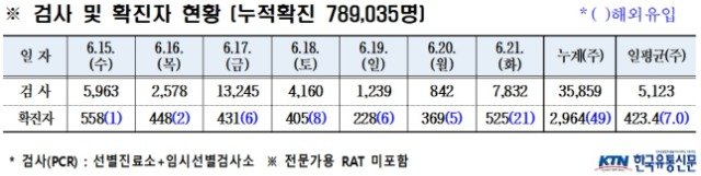 경북도내, 6월 21일 코로나19 확진자 525명(국내 504, 국외 21) 발생