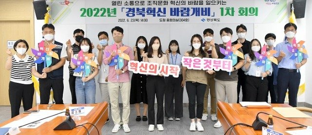 (전국= KTN) 김도형 기자= 경상북도는 조직문화 혁신을 위해 새천년(MZ) 세대 도청공무원으로 구성된 혁신모임‘경북혁신 바람개비’(이하 혁신바람개비)가 6월 23일 도청에서 1차 회의를 갖고 본격적인 활동에 들어갔다고 밝혔다.