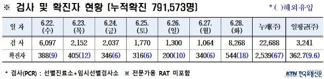 경북도내, 6월 28일 코로나19 확진자 544명(국내 526, 국외 18) 발생