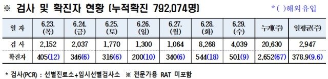 경북도내, 6월 29일 코로나19 확진자 501명(국내 492, 국외 9) 발생