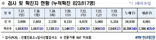 경북도내, 7월 23일 코로나19 확진자 2, 943명(국내 2, 931, 국외 12) 발생
