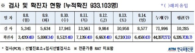 경북도내, 8월 14일 코로나19 확진자 6, 458명(국내 6, 415, 국외 43) 발생