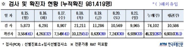 경북도내, 8월 21일 코로나19 확진자 6, 939명(국내 6, 906, 국외 33) 발생