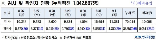경북도내, 9월 1일 0시 기준 코로나19 확진자 4,782명(국내 4,753, 국외 29) 발생