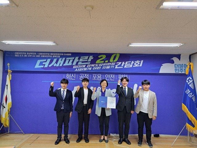 (전국= KTN) 김도형 기자= 더불어민주당 경북도당(위원장 임미애)은 더불어민주당 당내 청소년 당권 보장을 위해 활동하고 있는 더새파란2.0 위원들을 만나 ‘더새파란2.0 임미애 경북도당위원장x시퍼렇게 어린 것들?!’을 개최했다.