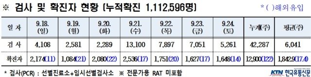 경북도내, 9월 24일 0시 기준 코로나19 확진자 1, 648명(국내 1, 634, 국외 14) 발생